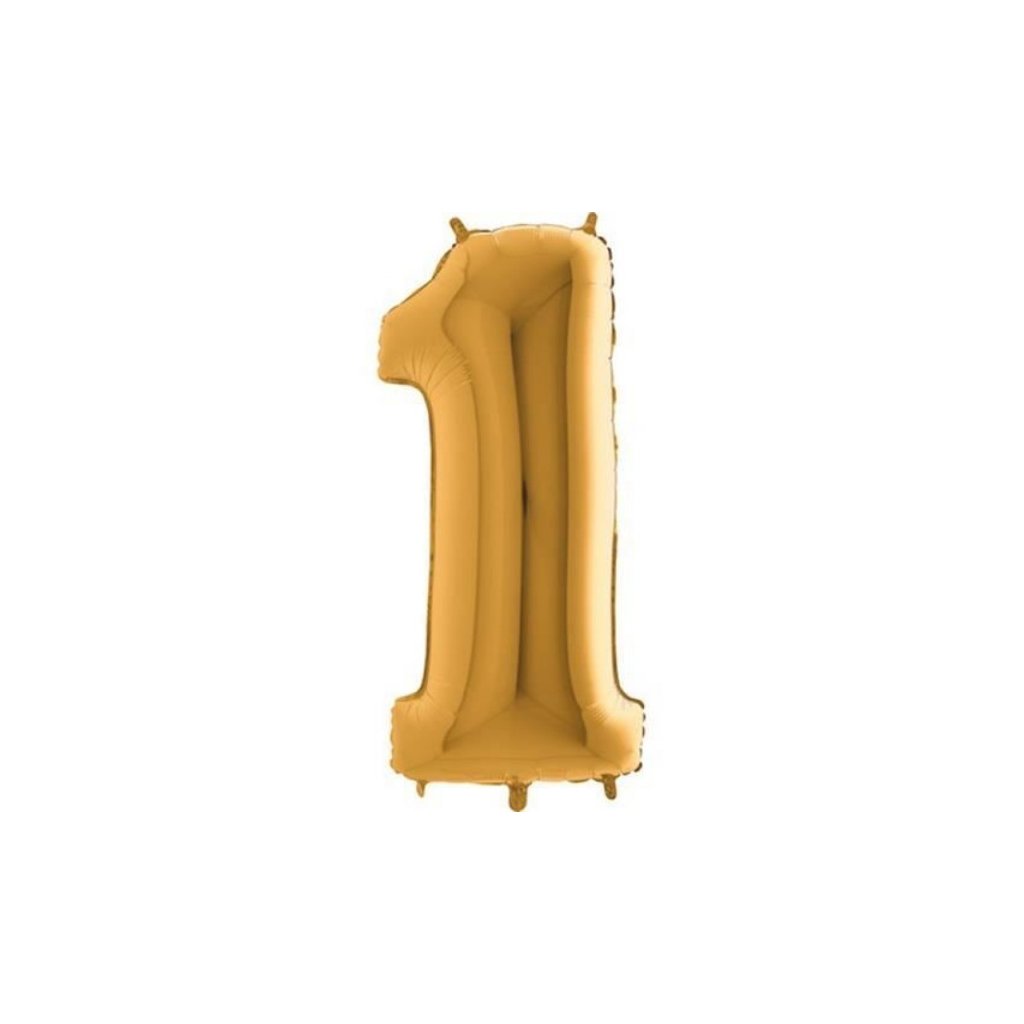 Foliová číslice 1 ve zlaté barvě. Balonek zůstane plně nafouknutý 3 až 5 dní, ale lze jej opakovaně dofukovat přes brčko.