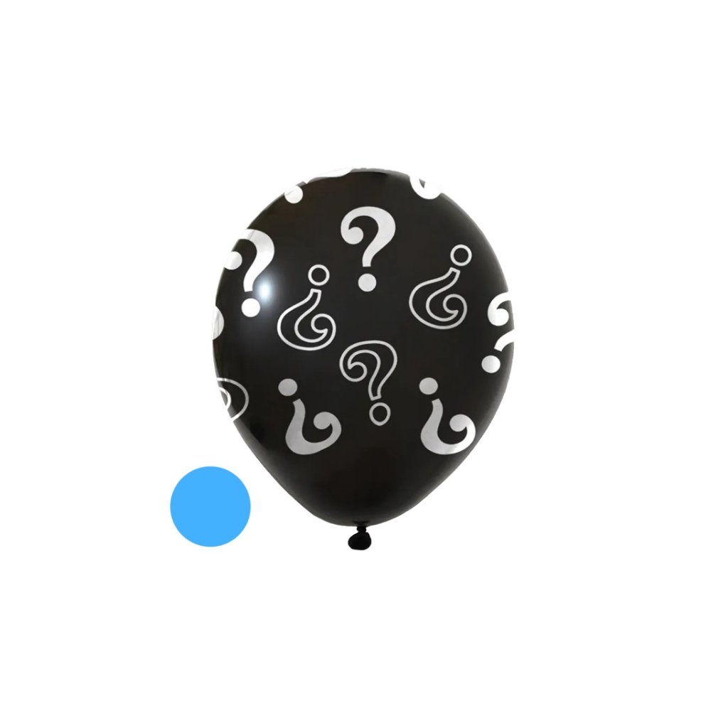 Latexový balónek s celoplošným potiskem otazníků, který může schovávat barevné konfety k odhalení pohlaví miminka. Uvedená cena: 1 ksRozměr: 45 cmBarevnost: černá, modrá náplňMožnost nafukování héliem/doba vznášení: ano/12 hodinObjem: 15lMateriál: 100% latex, náplň papírEko: 100% biologicky rozložitelnéObchodní balení: set balónek + konfetyDoplňkové parametry