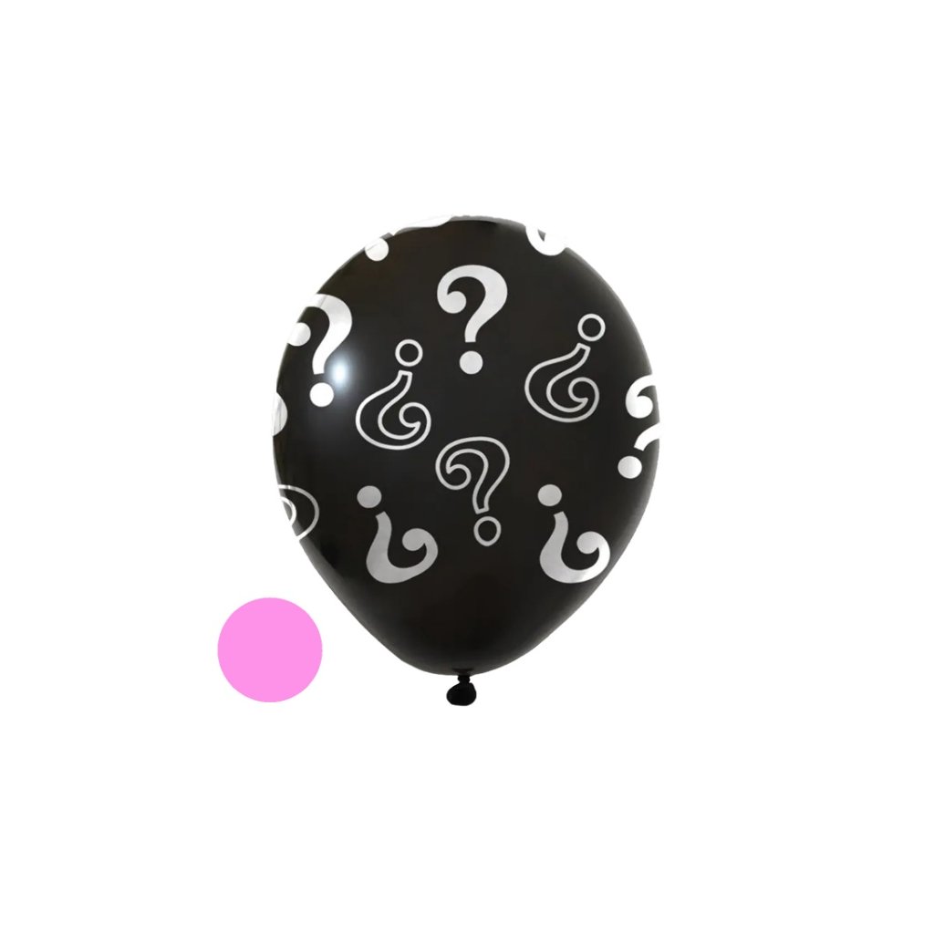 Latexový balónek s celoplošným potiskem otazníků, který může schovávat barevné konfety k odhalení pohlaví miminka. Uvedená cena: 1 ksRozměr: 45 cmBarevnost: černá, růžová náplňMožnost nafukování héliem/doba vznášení: ano/12 hodinObjem: 15lMateriál: 100% latex, náplň papírEko: 100% biologicky rozložitelnéObchodní balení: set balónek + konfetyDoplňkové parametry
