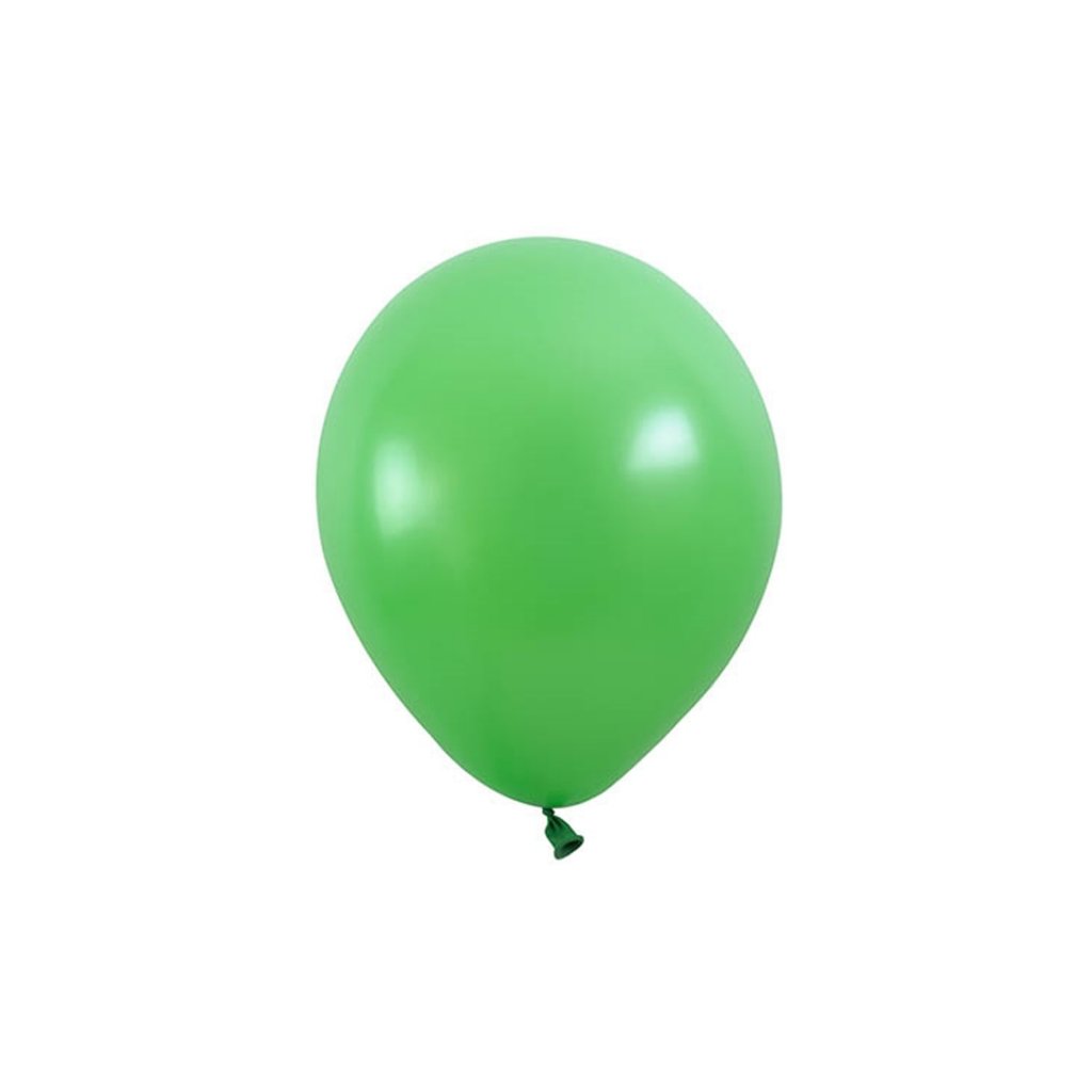 Kulaté nafukovací balonky v zelené barvě o průměru 25 cm, vhodné pro potisk. Jedná se o nejprodávanější velikost balonků. Lze nafukovat vzduchem i heliem. Barva: zelená Maximální průměr: 26 cm Doporučený průměr: 25 cm Obvod: 89 cm. Objem: 10l. Doba vznášení: 10 hod. (helium). Možnost potisku: sítotisk Balení: 100 ks.Doplňkové parametry
