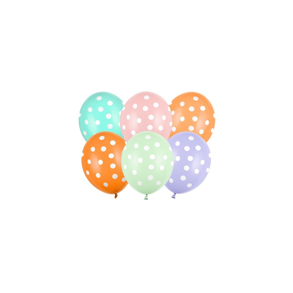 Sada prémiových dekoračních balonků s potiskem puntíků. Velikost jednoho balónku je 30 cm a vypadají prostě úžasně. Jsou vhodné k nafouknutí jak heliem, tak i klasicky vzduchem, hodí se na oslavu narozenin nebo jinou party. Balónky jsou vhodné pro nafukování vzduchem i héliemDodáváme v mixu pastelových barev. Rozměr: 30 cm. Balení: 6 ks. Objem jednoho balónku: 20l Délka letu při nafukování héliem: 22 hodinDoplňkové parametry