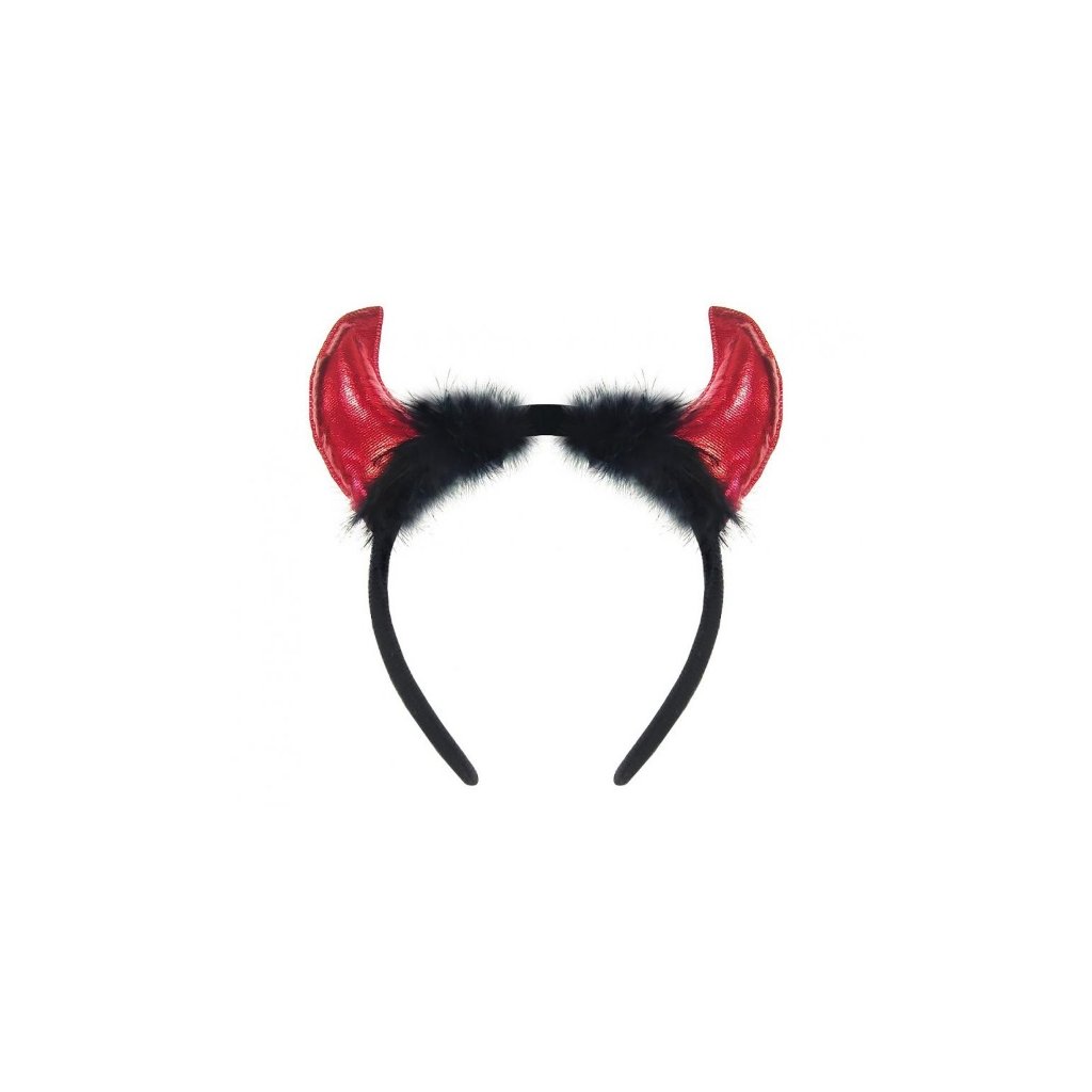 Čertovské rohy na praktické čelence, kterou jednoduše schováte do vlasů nebo paruky. Materiál: plast.Barva: červená, černáBalení: 1 ks.Doplňkové parametry