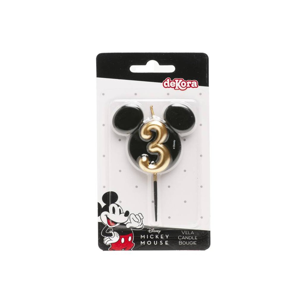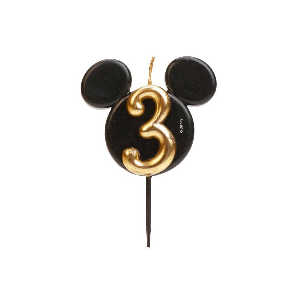 Dekora svíčka Mickey černo-zlatá číslo 3 ♡
