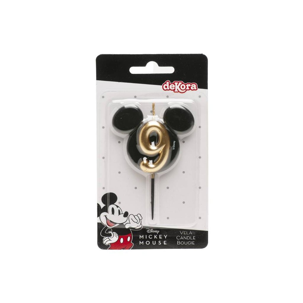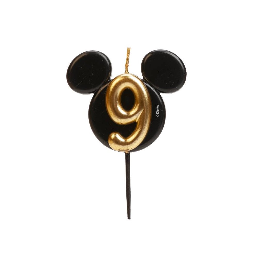 Dekora svíčka Mickey černo-zlatá číslo 9 ♡