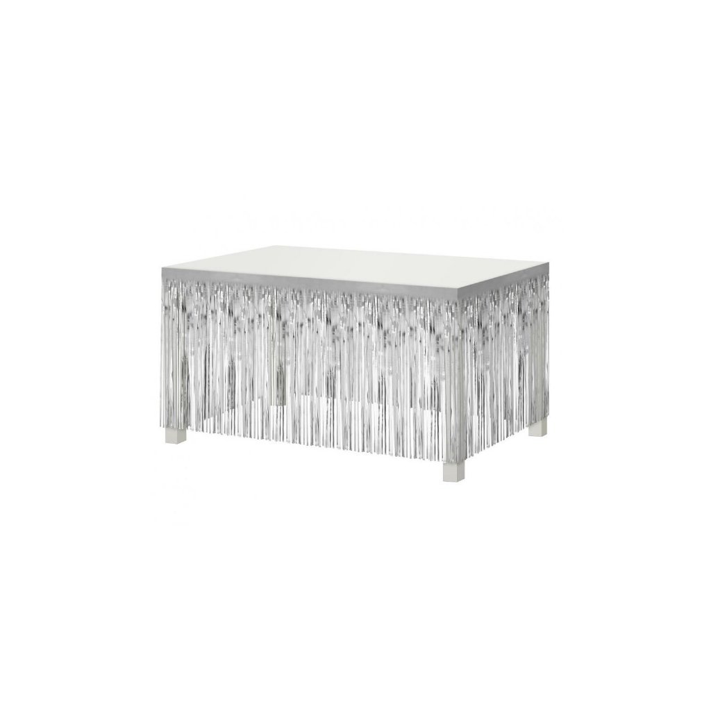 Dekorace okraje stolu Vám pomůže s dekorací vašeho candy baru nebo rautového stolu na Vaší party nebo oslavě. Rozměry: 80 x 300 cm Barva: stříbrná Materiál: fólie Počet kusů v balení: 1 ks.Doplňkové parametry