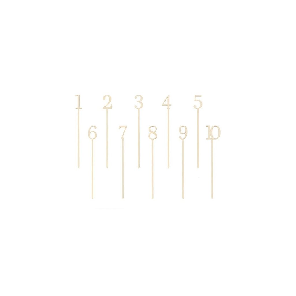 Dekorační dřevěné číslice na stůl 10 ks pomocí, kterých můžete označit stoly na svatbě nebo jiné společenské události jako jsou plesy, oslavy narozenin ale i babyshower nebo firemní večírky. V balení jsou čísla od 1 do 10. Rozměr: 25 cm. Balení: 10 ks.Doplňkové parametry