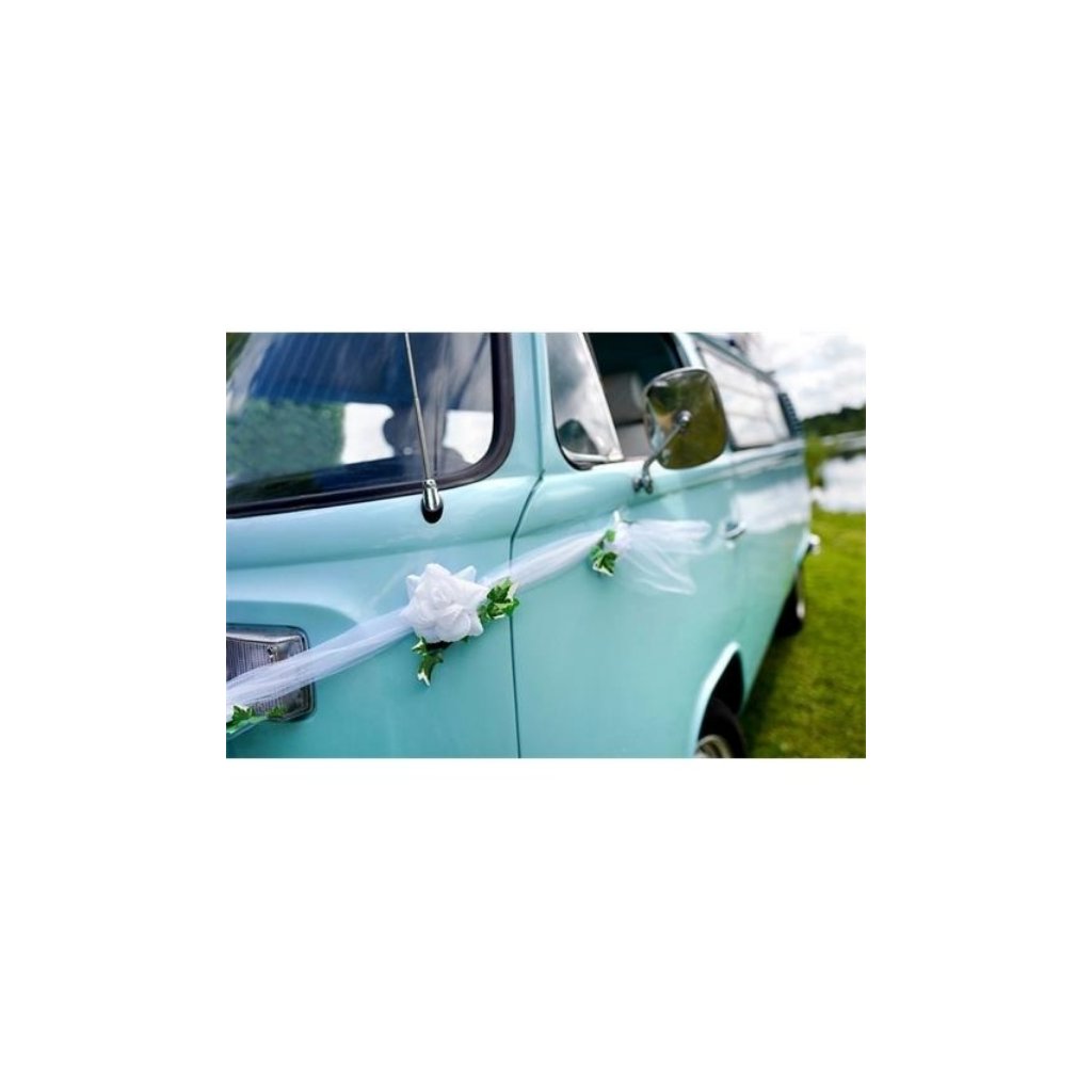Tylová girlanda s bílou růží a zelenými lístky jako svatební dekorace na auto. Krásná dekorace, kterou oslníte všechny hosty na vaší party. Hodí se jako svatební dekorace, na křtiny nebo jako výzdoba do fotokoutku. Tímto jednoduchým party doplňkem, dotáhnete každou oslavu k dokonalosti. Délka: 1,7 m. Balení: 1 ks.Doplňkové parametry
