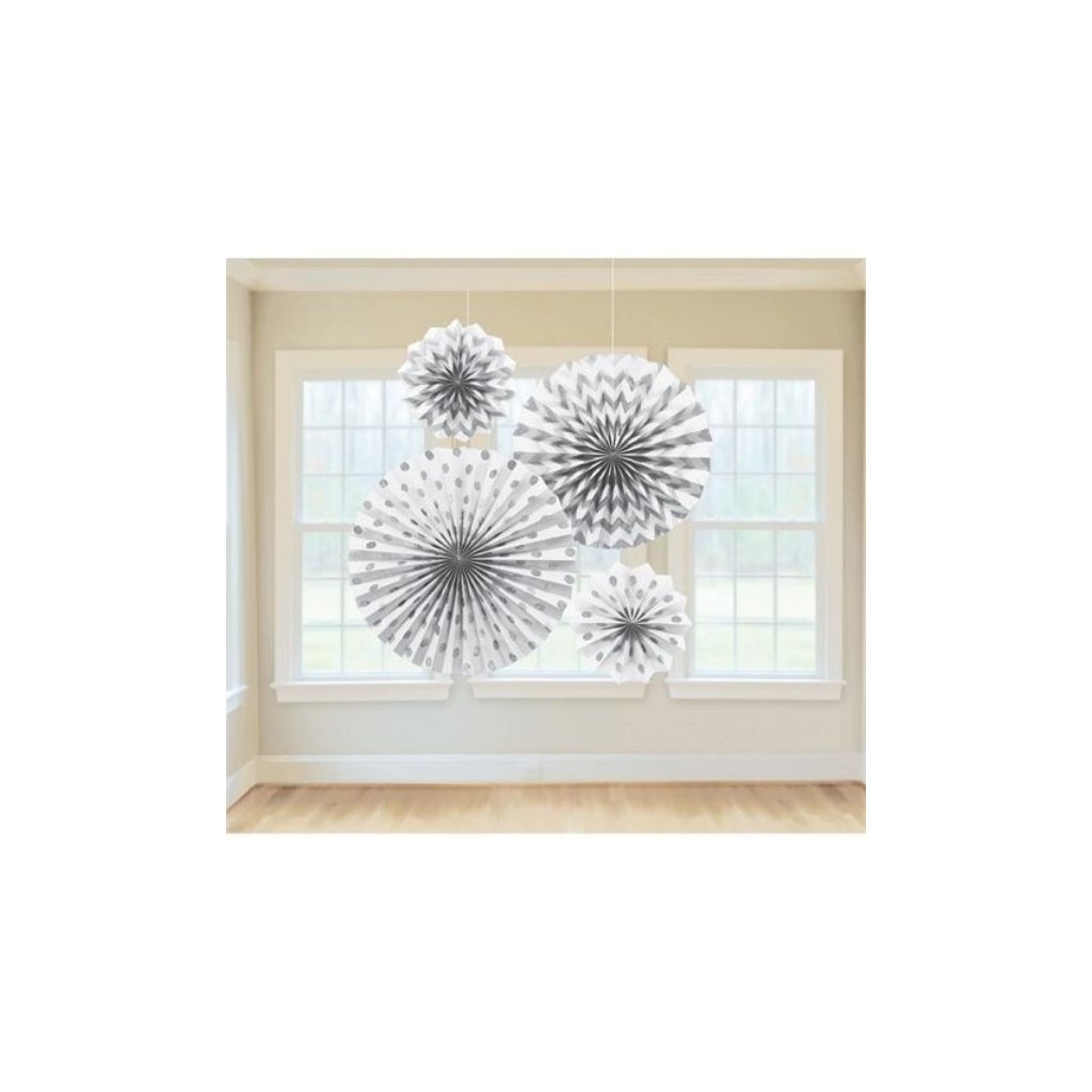 Dekorační závěsné rozety v bílé barvě. Rozety jednoduše roztáhnete a připevníte konce k sobě. Pak už je stačí jen připevnit kam budete potřebovat a dozdobit tak interiér každé party nebo oslavy narozenin. Rozměr: 2 x 20cm, 1 x 30 cm, 1x 40 cm. Balení: 4 ks.Doplňkové parametry