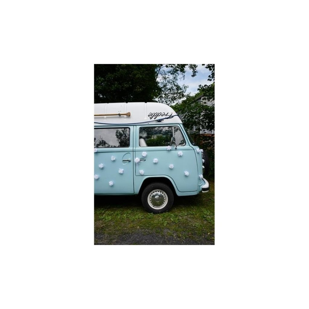 Květ růže v bílé barvě vhodný pro dekoraci automobilu nebo jakékoliv svatební dekorace. Růže má na sobě oboustranou lepící pásku, takže instalace je velmi jednoduchá. Rozměr: 9 cm. Balení: 24 ks.Doplňkové parametry