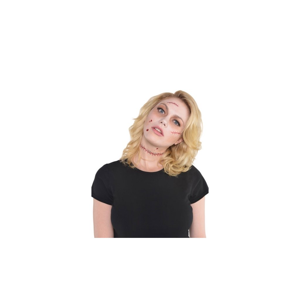 Falešné stehy! Dočasné tetování v motivu čerstvě zašitých ran. Ideální doplněk k Halloweenskému kostýmu, využijete ho ale i na karneval nebo na tematickou party. 14ti dílná sada dočasných tetovaček. Snadná aplikace, pomocí vody. A co je nejdůležitější, jdou i snadno odstranit. 1x balení: 14ksDoplňkové parametry
