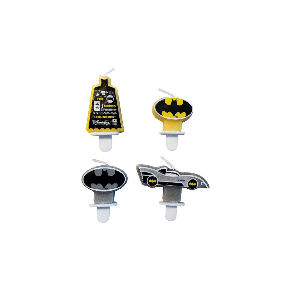 Dortové svíčky Batman. Charakteristické svíčky, které ozdobí narozeninový dort oslavence na vaší tematické party. Balení: 4 ks.Doplňkové parametry