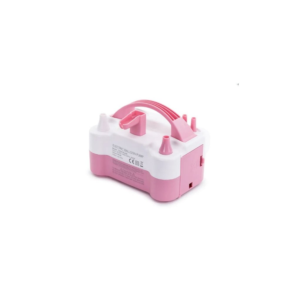 Elektrická pumpa na balónky, růžovo bílá. Kompresor na balonky 220V, pro nafukování všech tipů kulatých balónků, včetně balónků 5" (13 cm), při použití nástavců. Elektrický kompresor pouštíte buďto tlačítkem, nebo samospouští a má 2 vývody vzduchu na nafukování. Součástí je i praktický uzlovač nafouknutých balónků.Včetně redukce pro balonky typu 5" (13 cm) Elektrický kompresor se samospouští. Je vybaven dvěma vývody vzduchu. Nepostradatelný pomocník pro větší akce, oslavy, poutě a menší balonkové dekorace. Spouštění trvalé foukání nebo stisknutím tlačítka, výkon cca 500 balónků za hodinu. Napájení: 230V, přívod cca 120 cm.Výkon: 600WDoplňkové parametry