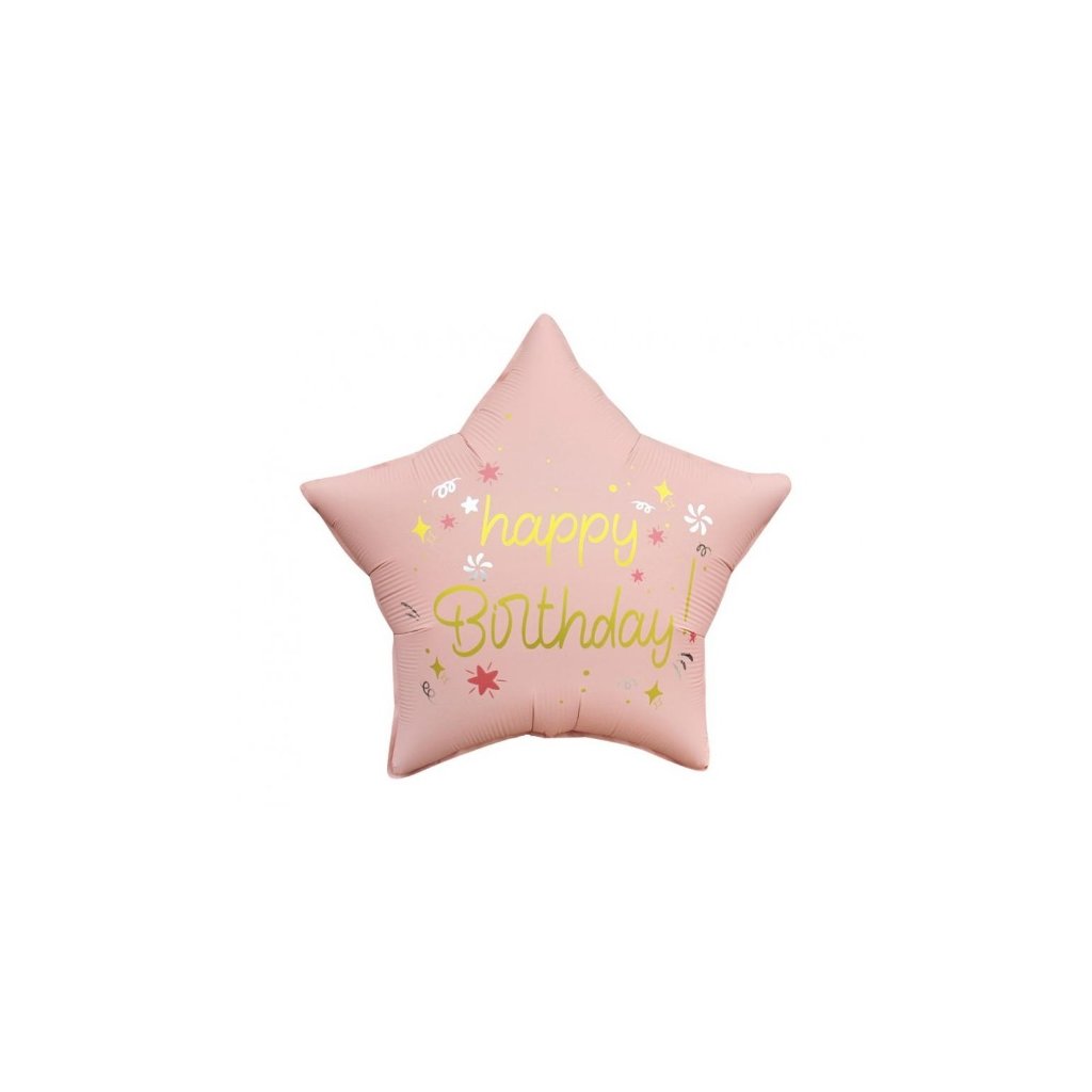 Balónek ve tvaru hvězdy s oboustranným potiskem k narozeninám, který dodáváme ve třech variantách pro vytvoření krásné dekorace nebo dárku pro oslavence. Balónek lze plnit vzduchem i héliem. Velikost balónku je 45 cm a jeho barva je jemně růžová. Je opatřený samo uzávěrem.Při nafouknutí heliem vydrží plně nafouklý cca 4 až 7 dní, poté se začne pomalu vyfukovat. Balonek je vyroben z recyklovatelných materiálů a je 100% recyklovatelný Velikost: 45 cmBalení: 1 ksDoplňkové parametry