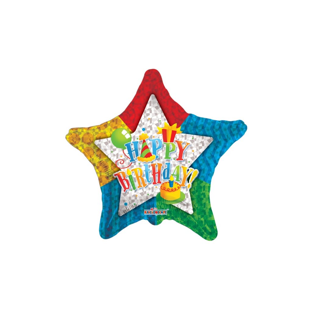 Foliový balonek hvězda s veselým potiskem a s nápisem Happy Birthday. Tento balónek je perfektní dekorační doplněk na oslavu narozenin nebo party. Hodí se také jako malý dárek. Balonek lze nafouknout vzduchem i heliem. Při nafouknutí heliem vydrží plně nafouklý cca 3 až 5 dní, poté se začne pomalu vyfukovat. Balonek je vyroben z recyklovatelných materiálů a je 100% recyklovatelný. Velikost: 46 cm. Balení: 1 ks.Doplňkové parametry