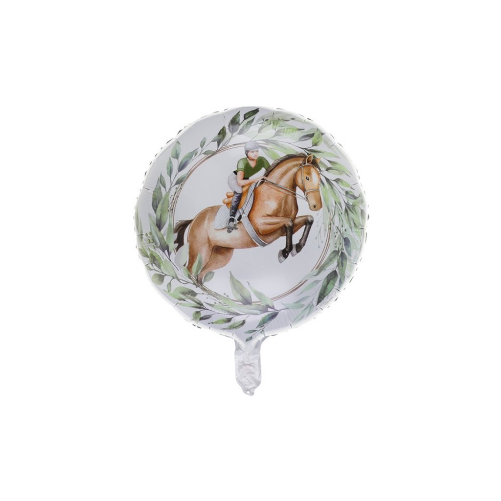 Kulatý fóliový balónek v bílé barvě a potiskem závodního koně. Tento balónek je perfektní dekorační doplněk na oslavu narozenin nebo jako výzdoba party. Hodí se také jako malý dárek. Balonek lze nafouknout vzduchem i heliem. Při nafouknutí heliem vydrží plně nafouklý cca 3 až 5 dní, poté se začne pomalu vyfukovat. Balonek je vyroben z recyklovatelných materiálů a je 100% recyklovatelný. Rozměr: 45 cm.Oběm: 15 litrů. Balení: 1 ks.Doplňkové parametry