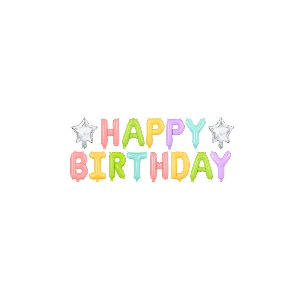 Foliový balonek HAPPY BIRTHDAY v macaron barvách. Lze jej plnit pouze vzduchem. Zůstane plně nafouknutý 3 až 5 dní, ale lze jej opakovaně dofukovat přes brčko. Písmenka jsou jednotlivé balonky. Rozměry: 395 x 35 cm. Balení: 1 ks.Doplňkové parametry
