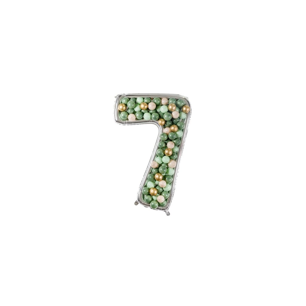 Forma na balonky - číslice 7. Balonková výzdoba je oblíbená party dekorace a lze jí využít například na oslavě narozenin, firemním večírku ale i na silvestra. Konstrukce je vyrobena z folie a její instalace je opravdu jednoduchá. Pro dokonalý design, vyplňte formu nafouknutými balonky různých velikostí a přilepte jej lepíky. Před naplněním je třeba konstrukci nafouknout pumpičkou nebo brčkem. Pumpička ani balonky nejsou součástí. Velikost: 126 cmBalení: 1 ks nafukovací konstrukce, 120ks lepíků ( lze použít i oboustranou lepící pásku )Doplňkové parametry