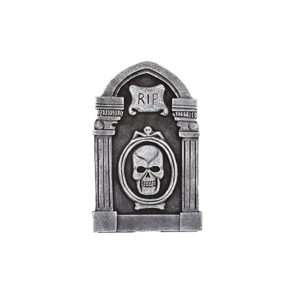 Halloweenská dekorace z polystyrenu a ve tvaru náhrobku s motivem lebky a nápisem RIP. Je skvělá pro vytvoření děsivé atmosféry na vaší halloweenské oslavě. Její realistický design dodá vašemu dekoru autentičnost. Velikost: 31 cm. Balení: 1 ks.Doplňkové parametry