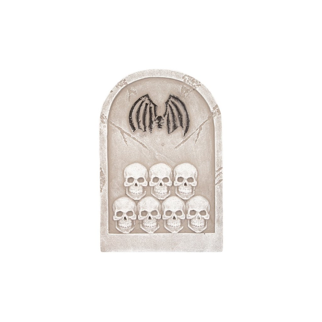 Halloweenská dekorace Náhrobek - Lebky 56 cm. Halloweenská dekorace z polystyrenu a ve tvaru náhrobku s motivem lebky. Je skvělá pro vytvoření děsivé atmosféry na vaší halloweenské oslavě. Její realistický design dodá vašemu dekoru autentičnost. Velikost: 56 cm. Balení: 1 ks.Doplňkové parametry
