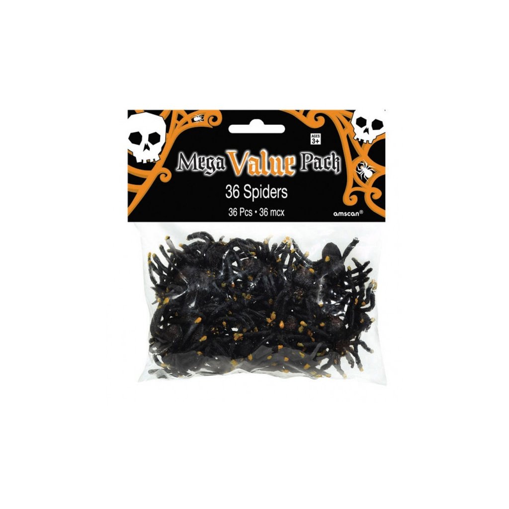 Halloweenská dekorace pavouci, které jsou vhodné na dekoraci například stolu nebo přímo na zem, poté dodají večeru skvělou atmosféru. Velikost: 5 x 4 cm. Balení: 36 ks.Doplňkové parametry
