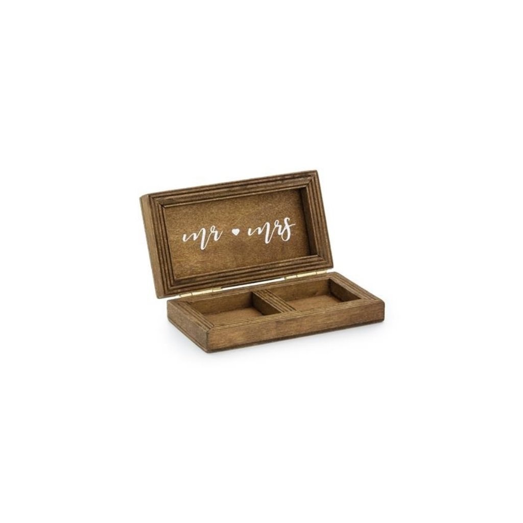 Dřevěná krabička na prstýnky s oddělením prstenů. Vhodný na jakoukoliv svatbu, zejména ale na Nature a luxusní svatby. Udělejte dojem krásným prvkem na vaší svatbě. Velikost: 10 x 5,5 cm. Balení: 1 ks.Doplňkové parametry