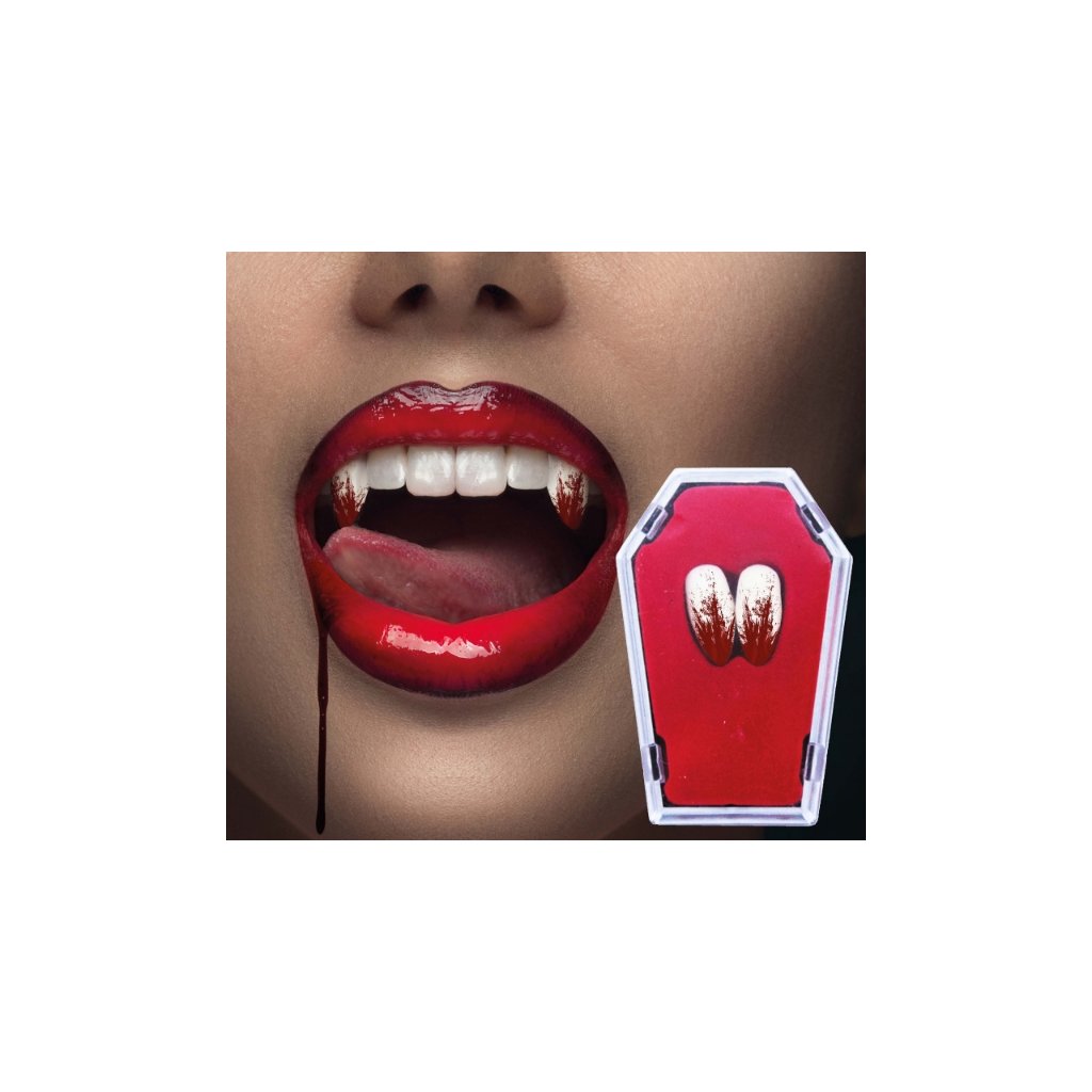 Krvavé upírské zuby s termoplastem – bílo-červené /BP