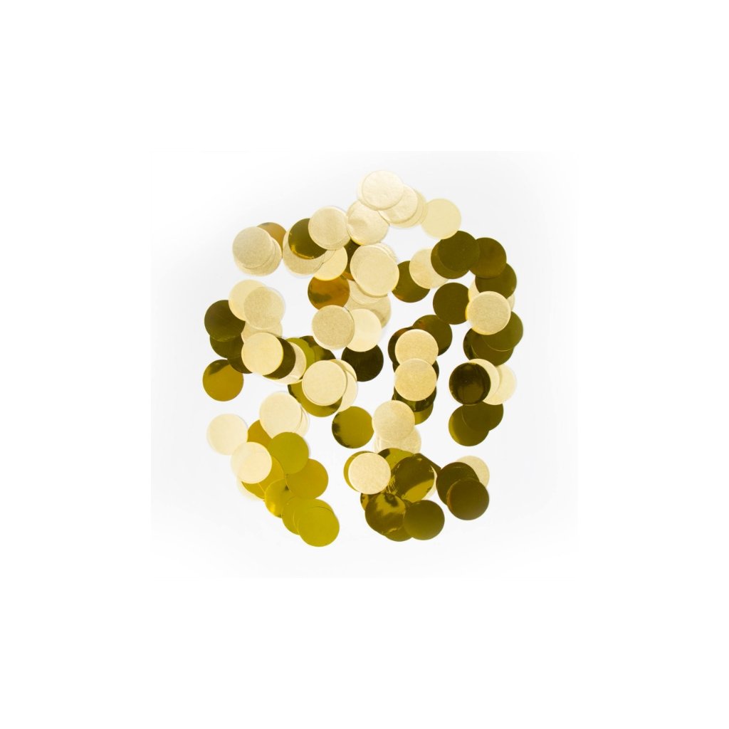 Metalické zlaté konfety na stůl a dekoraci, které jsou vyrobeny z lesklého materiálu a vhodné nejen k výzdobě párty stolu, ale také pro výrobu plněných balónků. Průměr: 2,5 cmMateriál: plastová fólie, papírBalení: 14gDoplňkové parametry