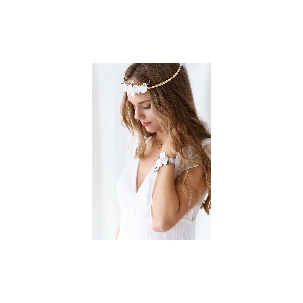 Stylový náramek s květy v bílé barvě, který se hodí pro nevěstu v její svatební den ale i jako rekvizita do fotokoutku. Hledáte doplněk ke svým boho šatům? Boho styl svatba, a oslavy v přírodním stylu, jsou modní a trendy. Vyzkoušejte i vy co se nosí!Doplňkové parametry