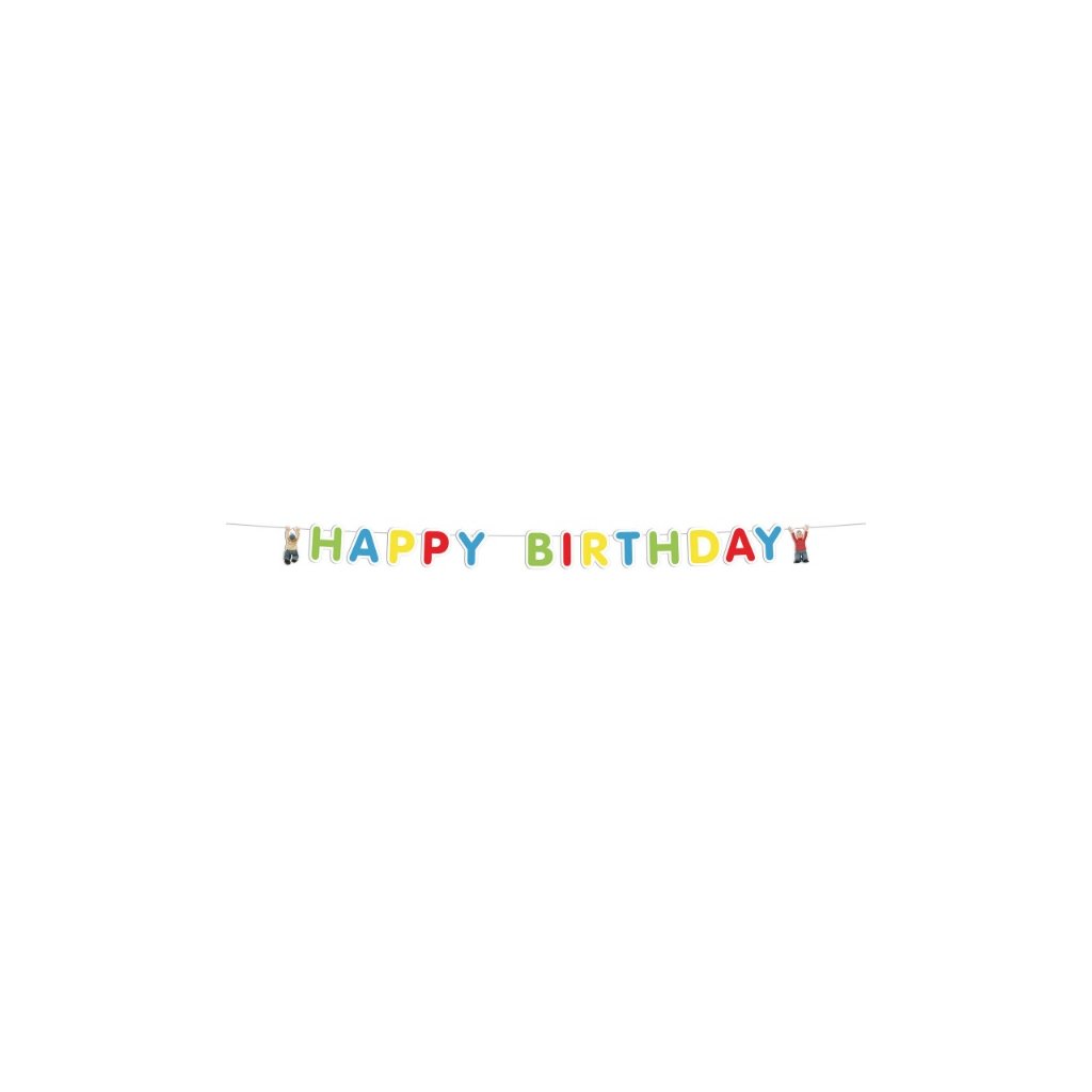Narozeninový nápis s nápisem Happy Birthday, přímo na tématickou party Pat a Mat. Vhodné pro dekoraci oslavy. Velikost:150 cm Balení: 1 ks.Doplňkové parametry