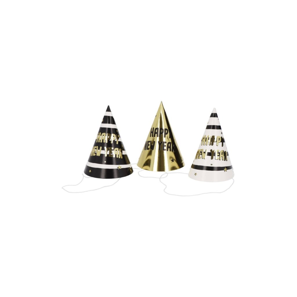 Papírové čepičky Happy New Year Black Gold - 6 ks /BP