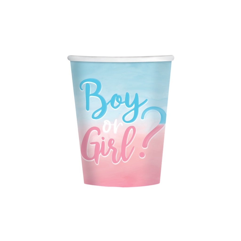 Papírové kelímky na oslavu odhalení pohlaví dítěte. Objem: 250 ml. Balení: 8 ks.Doplňkové parametry