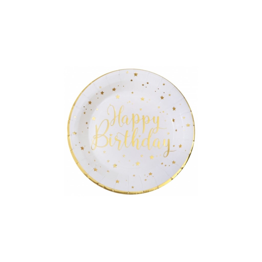 Papírové talíře Happy Birthday bílo zlaté – 10 ks /BP