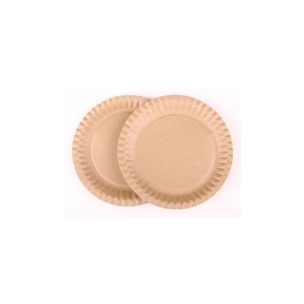 Talíře pro jednorázové použití, budou nepostradatelným doplňkem každé oslavy narozenin, tématické party nebo zahradní oslavy s grilováním. Jsou také velmi praktické, talíře po použití jednoduše ekologicky zlikvidujete, bez nutnosti mytí. Kraftliner hnědo-hnědá lepenka 230- 300g/m2. Materiál je vhodný pouze pro styk se suchou i mastnou potravinou. Talíř KRAFT je vyroben z FSC® certifikovaného materiálu a dle mezinárodních norem BRC(G)S standardů pro bezpečnost potravin. Materiál je vhodný pro přímý styk s mastnou a vlhkou potravinou. Velikost: 23 cm. Balení: 100 ks.Doplňkové parametry