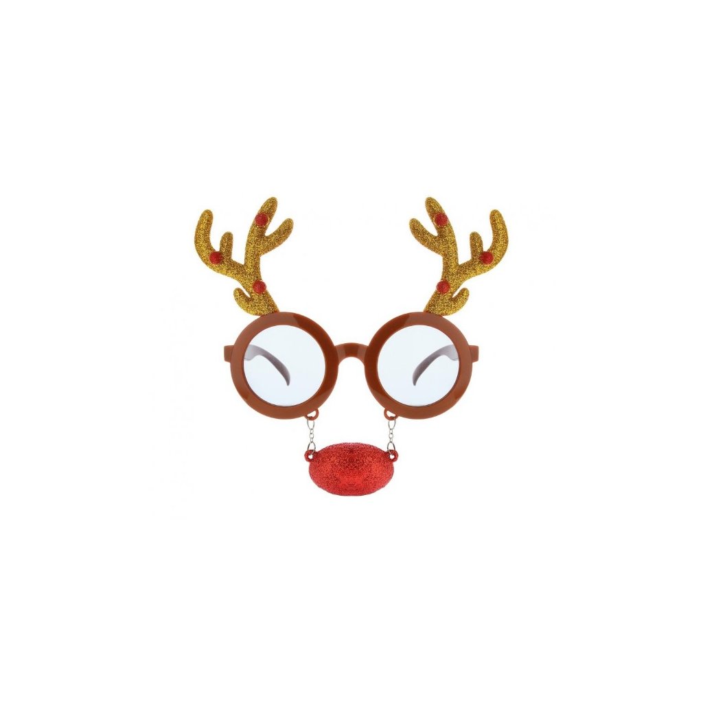 Humorné party okuliare ozdobené sobími rožkami a červeným nosom na retiazke. Balenie 1 ks.Doplňkové parametry