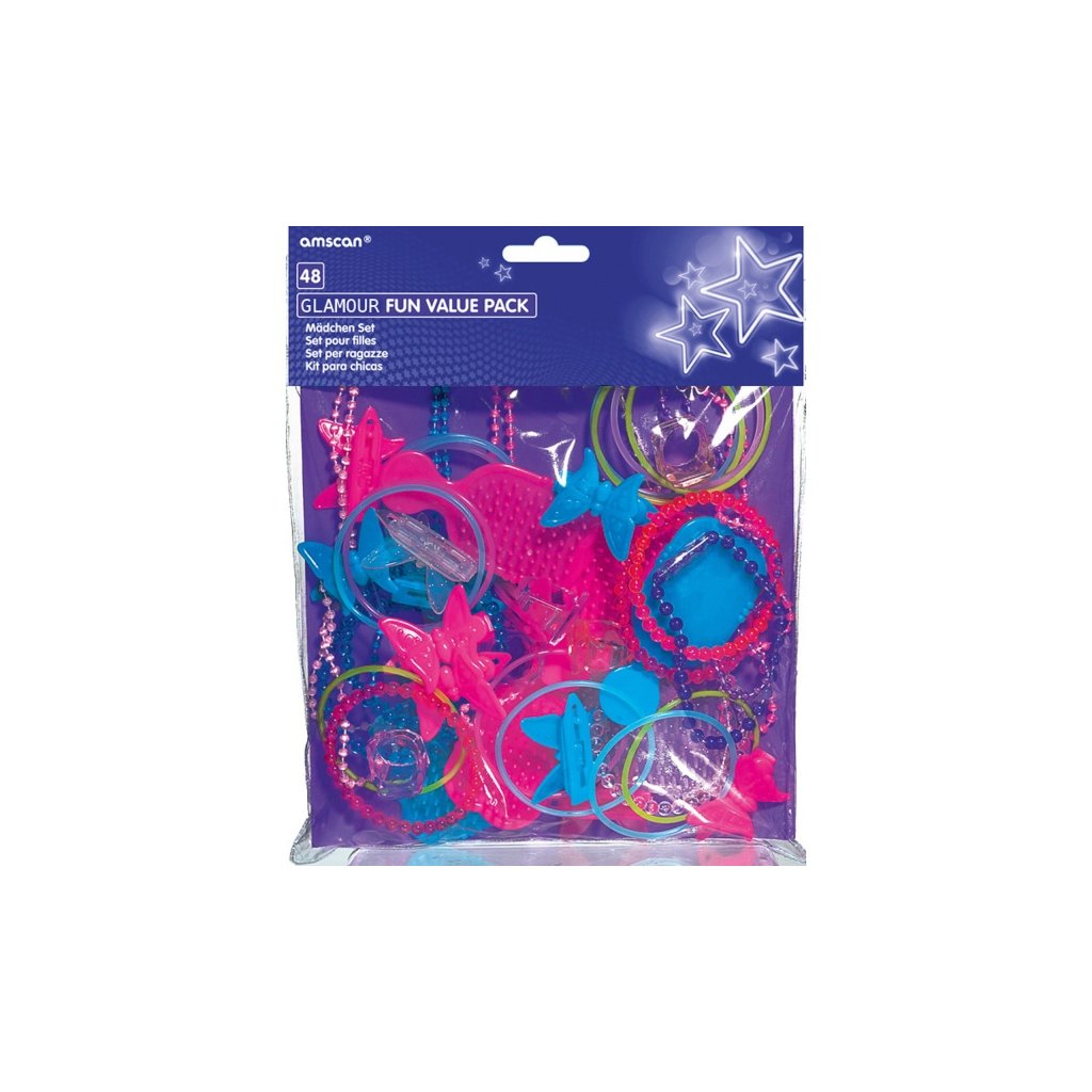 Zábavný party set dárečků pro dívky - 48 ks. Balení obsahuje různé druhy doplňků pro mladé parádnice jako jsou náhrdelníky, náramky, sponky do vlasů, hřebínky, prstýnky. Skvělý doplněk na dětskou party pro dívky. Tento set 48 hraček je navržen tak, aby potěšil a inspiroval mladou generaci módních nadšenců. Ať už hledáte překvapení pro dětskou oslavu nebo chcete udělat radost svým ratolestem, tyto modní doplňky jsou tou pravou volbou! 1. Stylový design: Každá z těchto hraček je vyrobena s láskou k módě, dodají vašim dětem šmrnc a rozjasní jejich každodenní život. 2. Barevná rozmanitost: Nabídka různých barev umožňuje vašim dětem vybrat si svůj oblíbený odstín nebo kombinovat více náramků pro jedinečný vzhled. 3. Ideální dárek: Tyto kouzelné hračky jsou perfektním řešením jako drobný dárek pro kamarády, sourozence nebo pro oslavy narozenin. Určitě uděláte radost každému dítěti! 4. Veselé a zábavné: Dětské hračky pro dívky jsou skvělé nejen jako módní doplněk, ale také jako hračka pro zábavu na dětských večírcích a setkáních. Největší benefity:1. Stylový design - zaujmou oko a dodají vašim dětem osobitý šmrnc.2. Barevná rozmanitost - možnost kombinovat hračky podle vkusu.3. Ideální dárek - potěšte své blízké tímto originálním překvapením.4. Veselé a zábavné - skvělé pro oslavy nebo jen tak pro radost.5. Bezpečné a pohodlné - kvalitní materiál vhodný i pro citlivou dětskou kůži.Nenechte si ujít šanci obdarovat své malé parádnice tímto jedinečným a krásným dárkem. Objednejte si náš set hraček pro dívky ještě dnes a přidejte kapku radosti do jejich života! balení: 48 ksDoplňkové parametry
