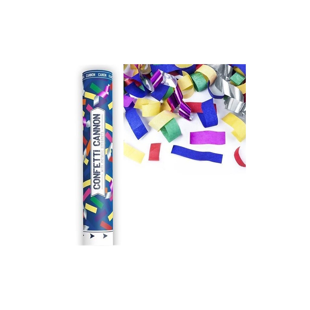 Vystřelovací konfety 40 cm, mix barevných papírků a fóliových serpentin. Vystřelené konfety doletí do vzdálenosti až 8 m Video s návodem k použití efektem naleznete pod tímto odkazem.Doplňkové parametry