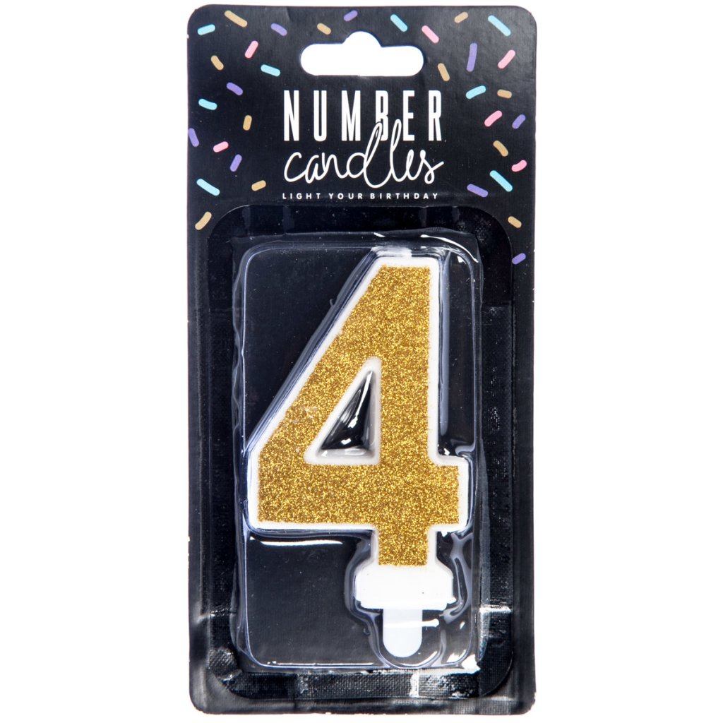 PARTY DECO Svíčka číslice "4" zlatá 7 cm 1 ks