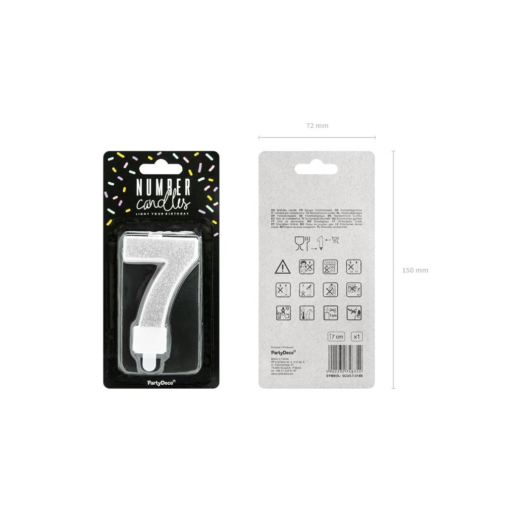 PARTY DECO Svíčka číslice "7" stříbrná 7 cm 1 ks