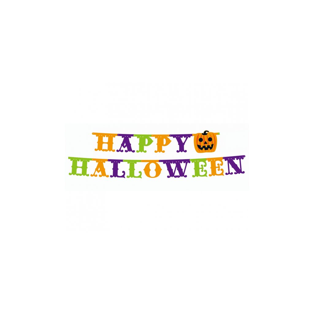 Papírový nápis Happy Halloween vhodný pro výzdobu místnosti na halloweenský večer. Skvěle vám v kombinace s dalšími dekoračními prvky pomůže vytvořit tu správnou atmosféru. Rozměr: 350 x 21 cm Balení: 1 ks.Doplňkové parametry