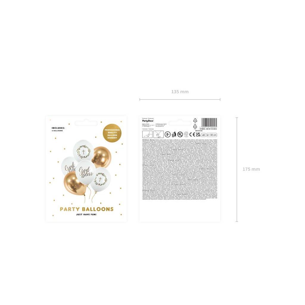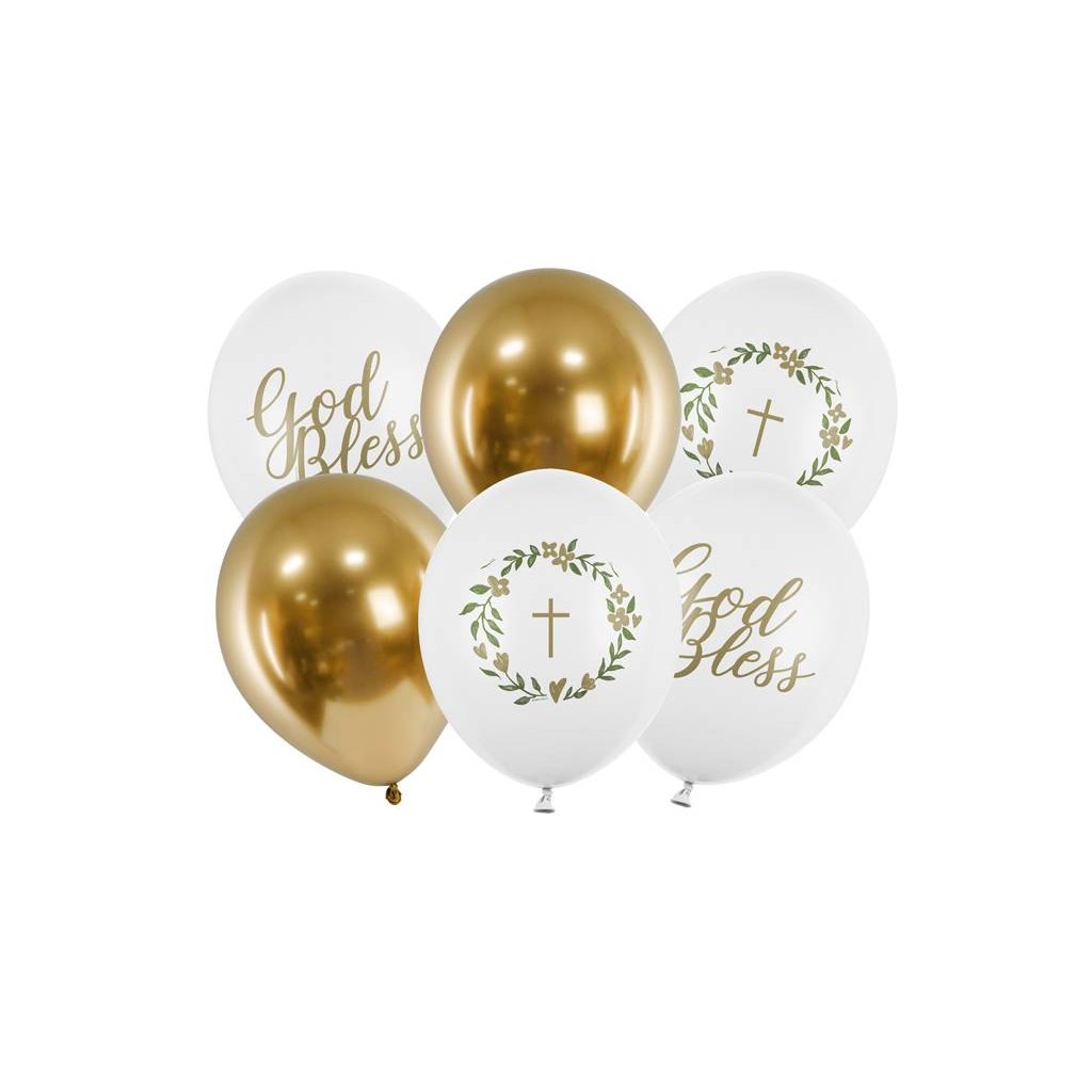 PartyDeco balónky bílé a zlaté God Bless (6 ks) svaté přijímání ♡