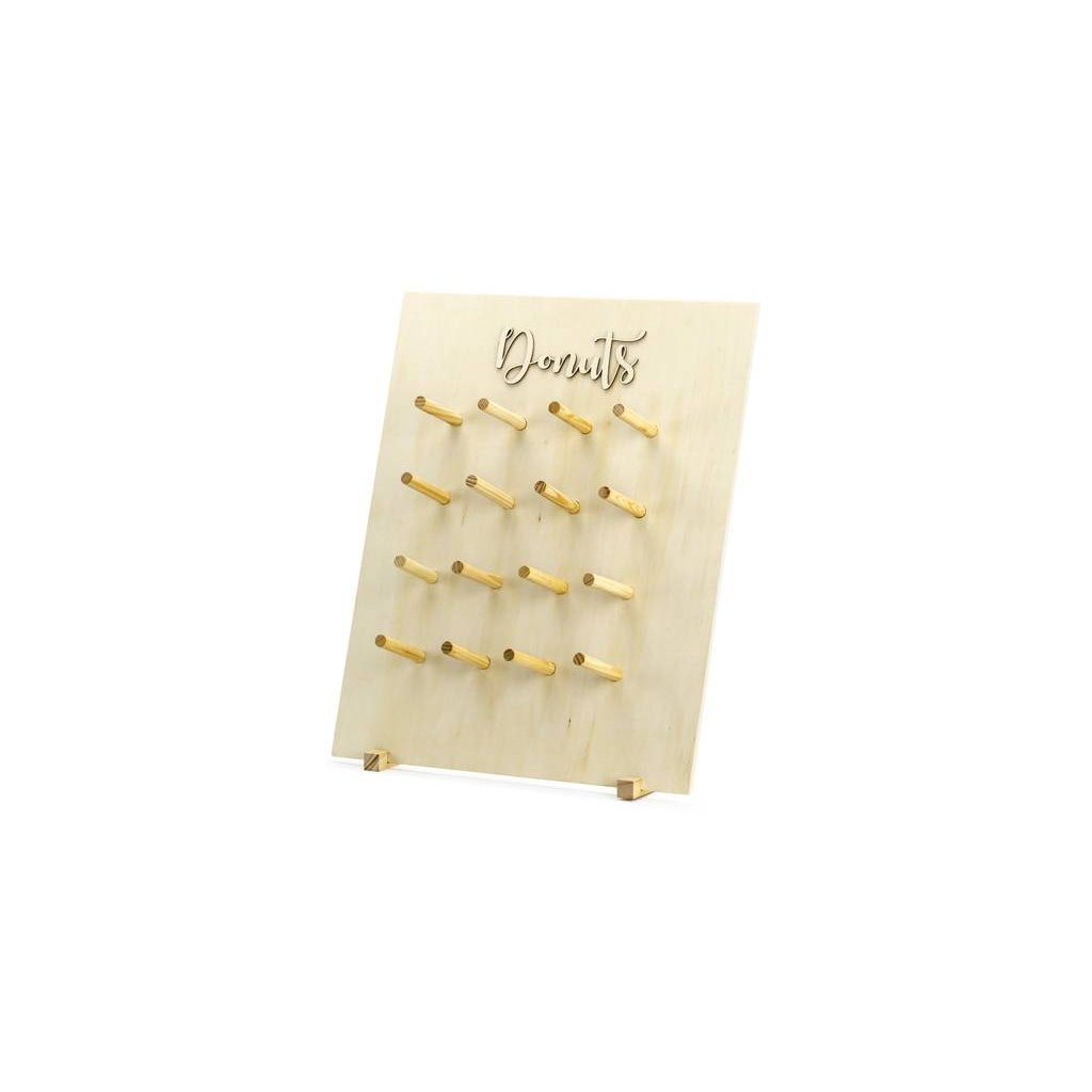 Dřevěná stěna s 16 kolíky na zavěšení donutů. Rozměr: 45 x 55 cmDoplňkové parametry