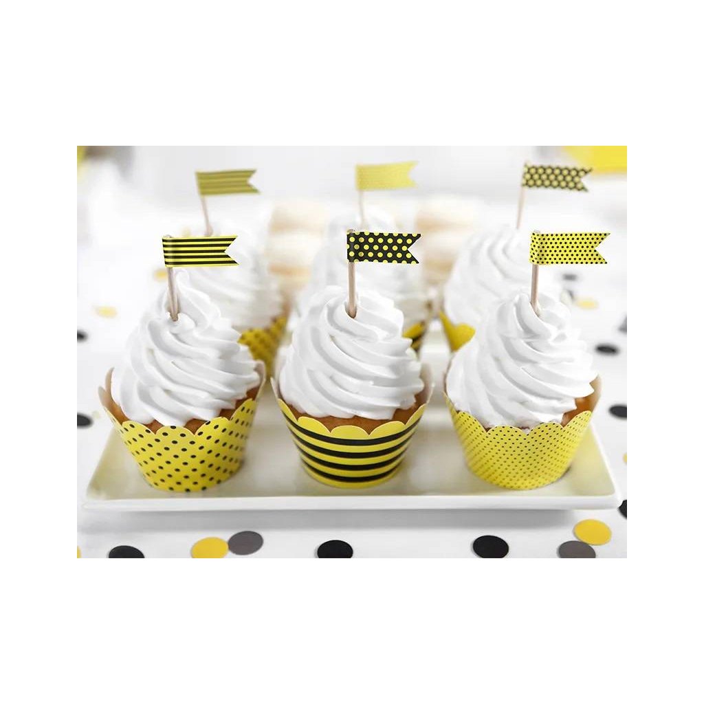 PartyDeco zápich na muffiny Mini vlaječky žluto-černé (6 ks) ▹