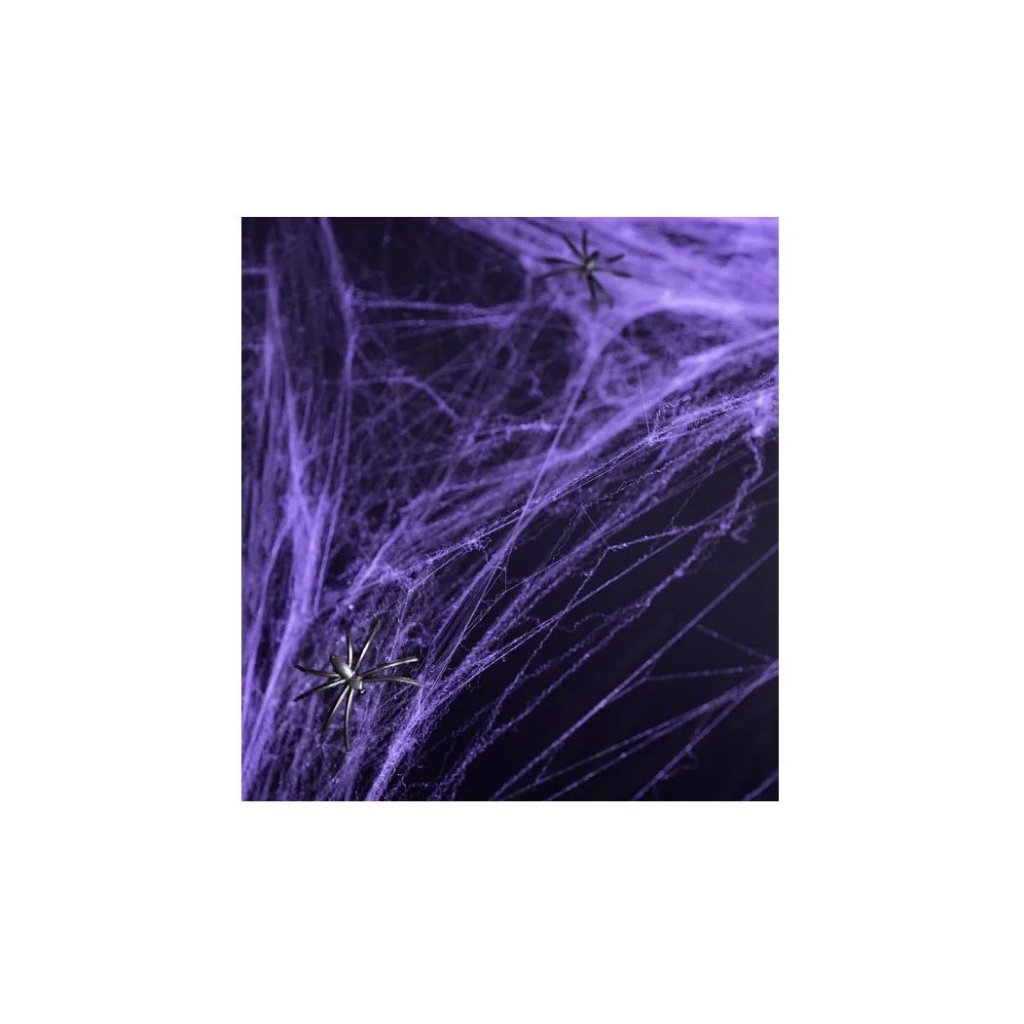 Pavučina s pavouky - fialová. Balení obsahuje velkou pavučinu, kterou hravě pokryjete svou Halloween party dekoraci, dva ošklivé pavouky. Množství: 60gDoplňkové parametry