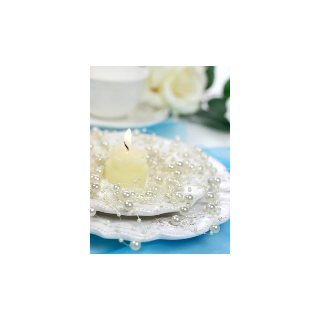 Perličky na vlasci krémové. Jsou vhodné jako dekorace svátečních a svatebních stolů, dekorování květin, Vánoční dekorace. Perlové girlandy, se také využívají například jako doplněk ke stolové šerpě, dekoraci skleněných svícnů atd.Doplňkové parametry