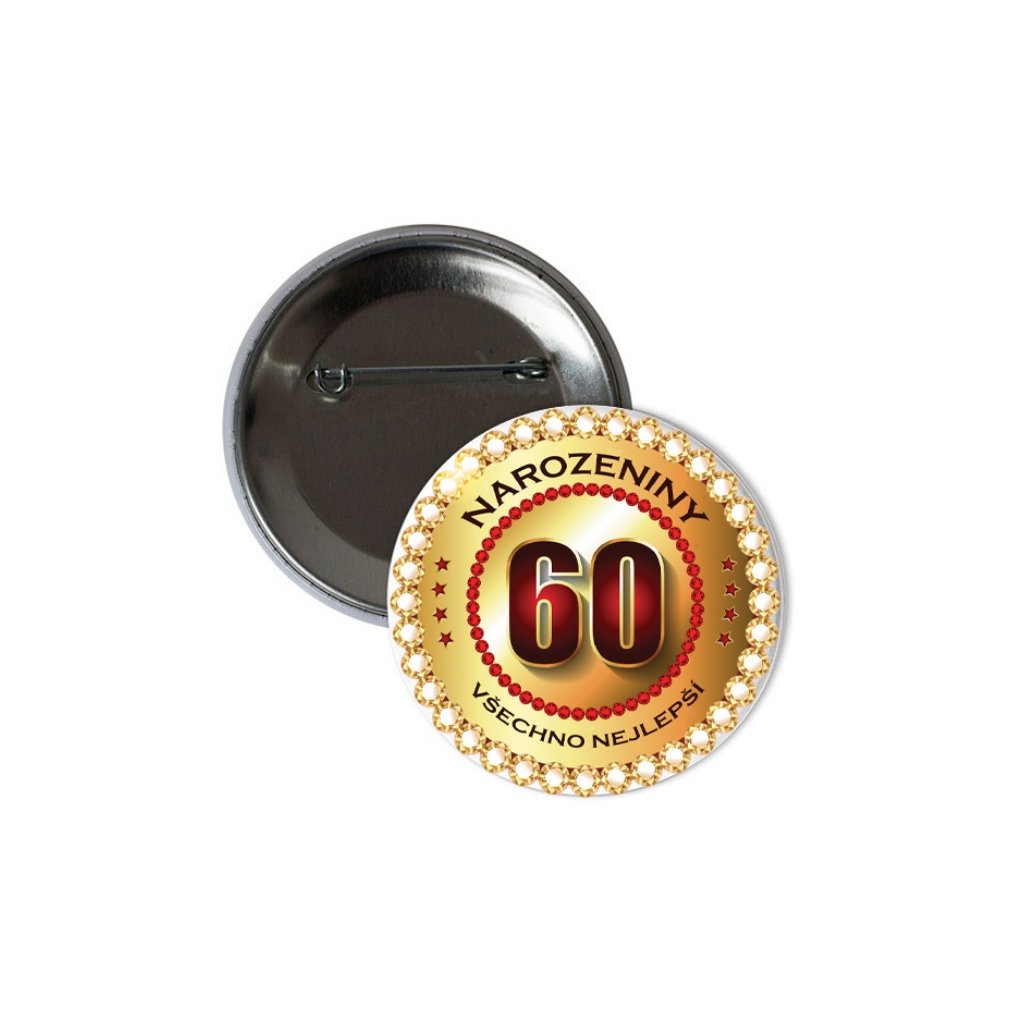 Placka Všechno nejlepší 60 let - 6 cm /BP