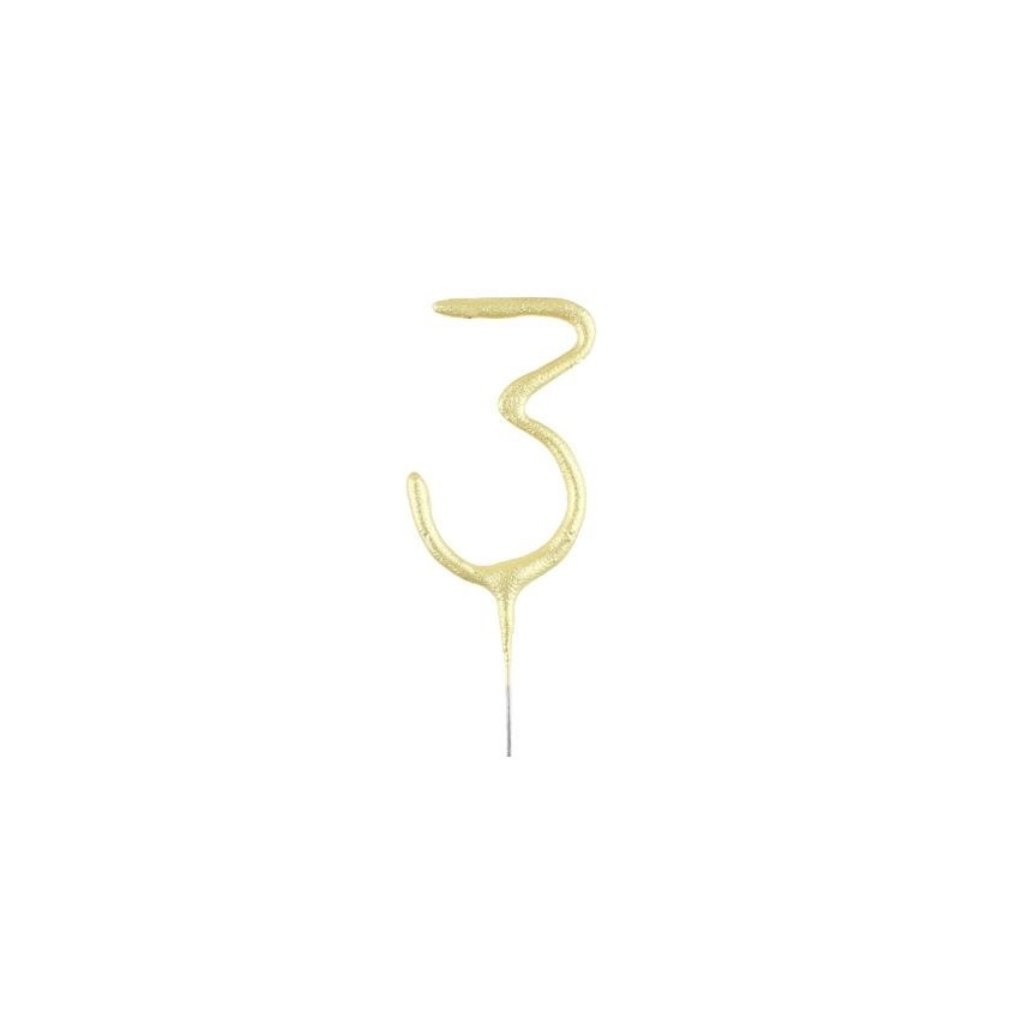 Prskavka na dort ve tvaru číslice 3, krásný efekt na dortu pro narozeninové oslavy a překvapení oslavence.