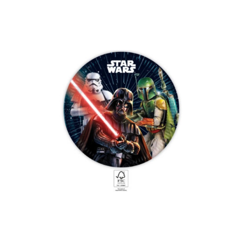Party papírové talíře s motivem Dartha Vadera, Boba Fetta a Stroomtroopra z kultovní série filmů Star Wars - Hvězdné války. Talíře budou ideálním doplňkem každé narozeninové oslavy nebo tématické party. Balení: 8 ks. Rozměry: 23 cm.Doplňkové parametry
