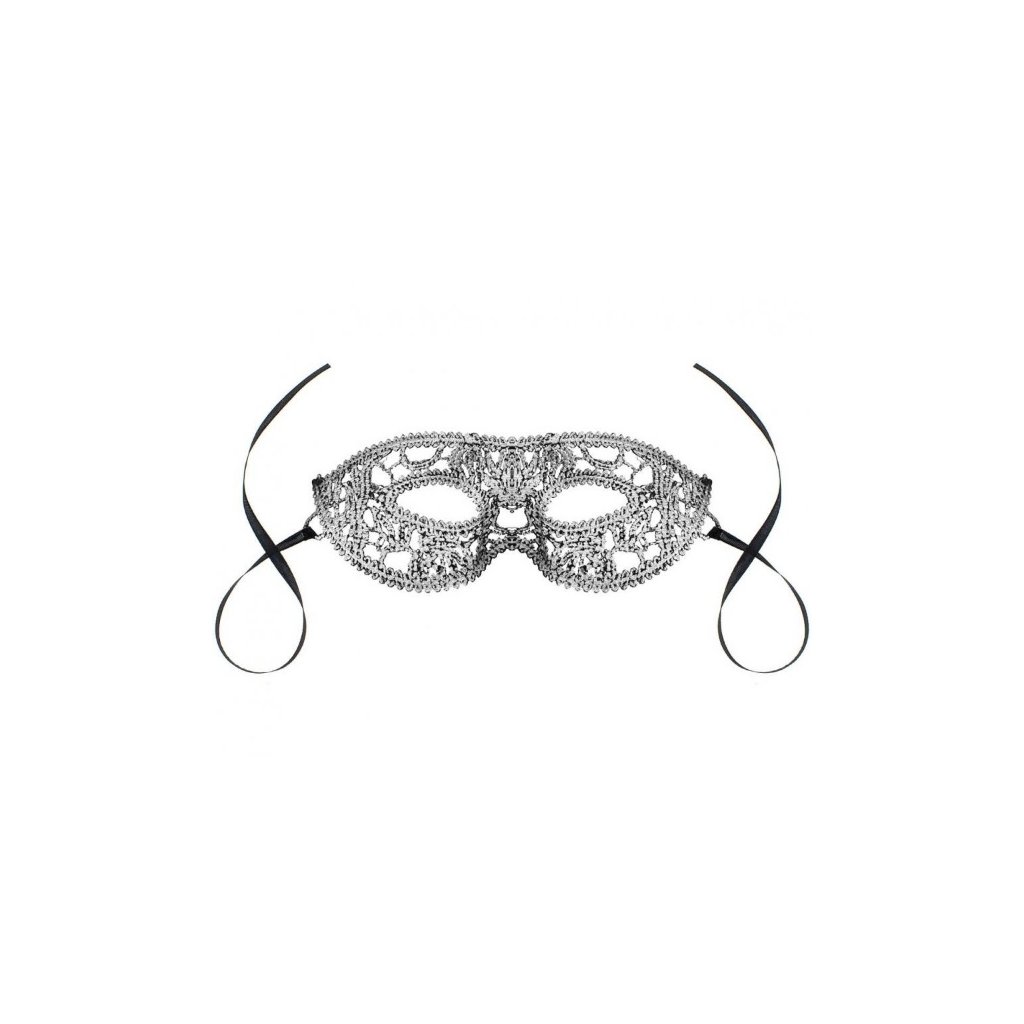 Stříbrná Benátská škraboška napodobující krajkový vzor. Prolamovaná škraboška drží na hlqavě díky zavazování ze saténové stuhy. Velikost VxŠ: 9 x 23 cmMateriál: prolamovaná maska z plastu a saténová stuha.Balení: 1 ksDoplňkové parametry