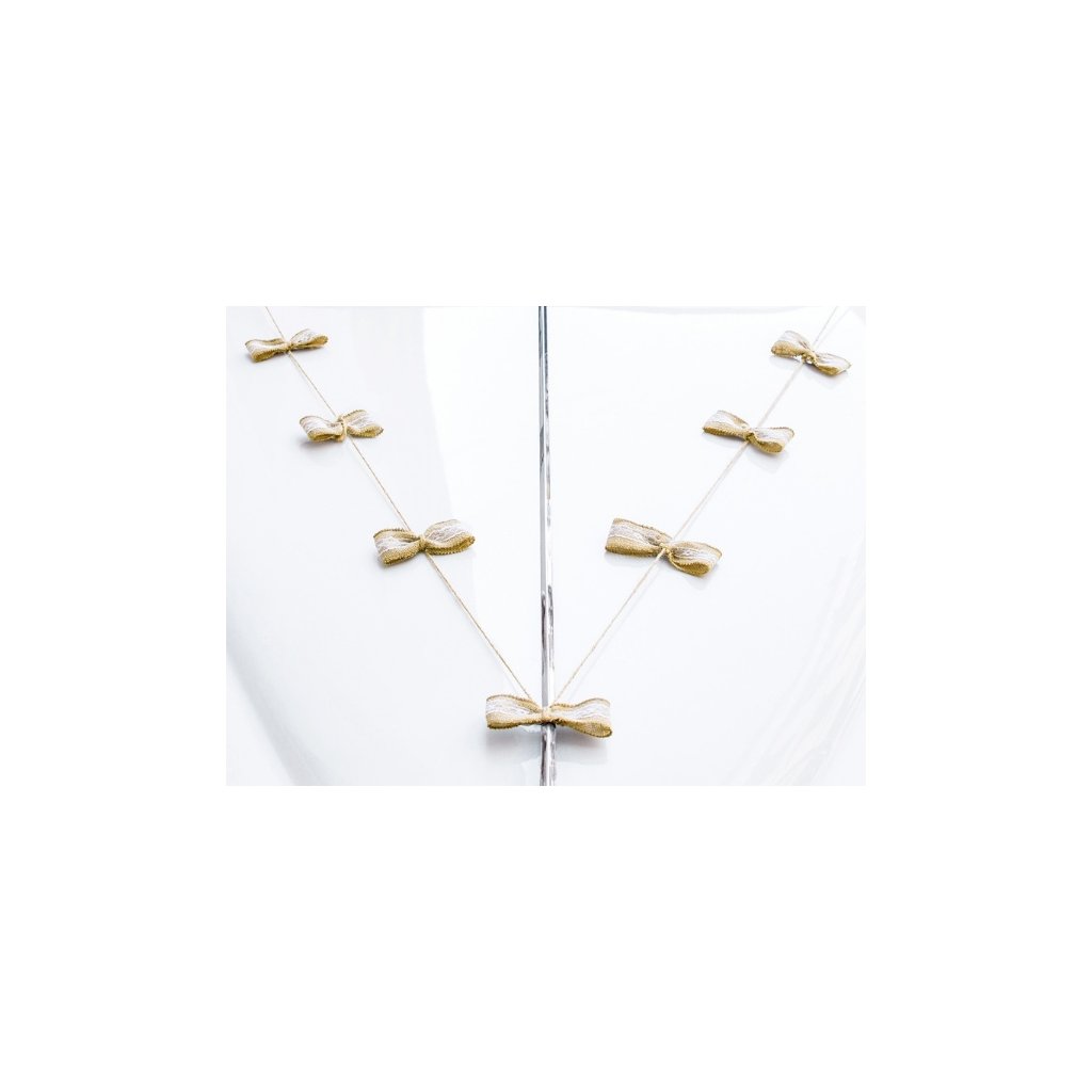 Sada obsahuje: Girlanda na kapotu z pytloviny (délka cca 6m), 4 mašle z pytloviny pro kliky od auta, mašle z pytloviny se zlatými plechovkami 3ks, přísavky na sklo 6ks, nylonový provázek cca 12 metrů. Tímto jednoduchým dekoračním doplňkem, vyzdobíte například prostor místnosti ale hodí se především na dekorace automobilů.Doplňkové parametry