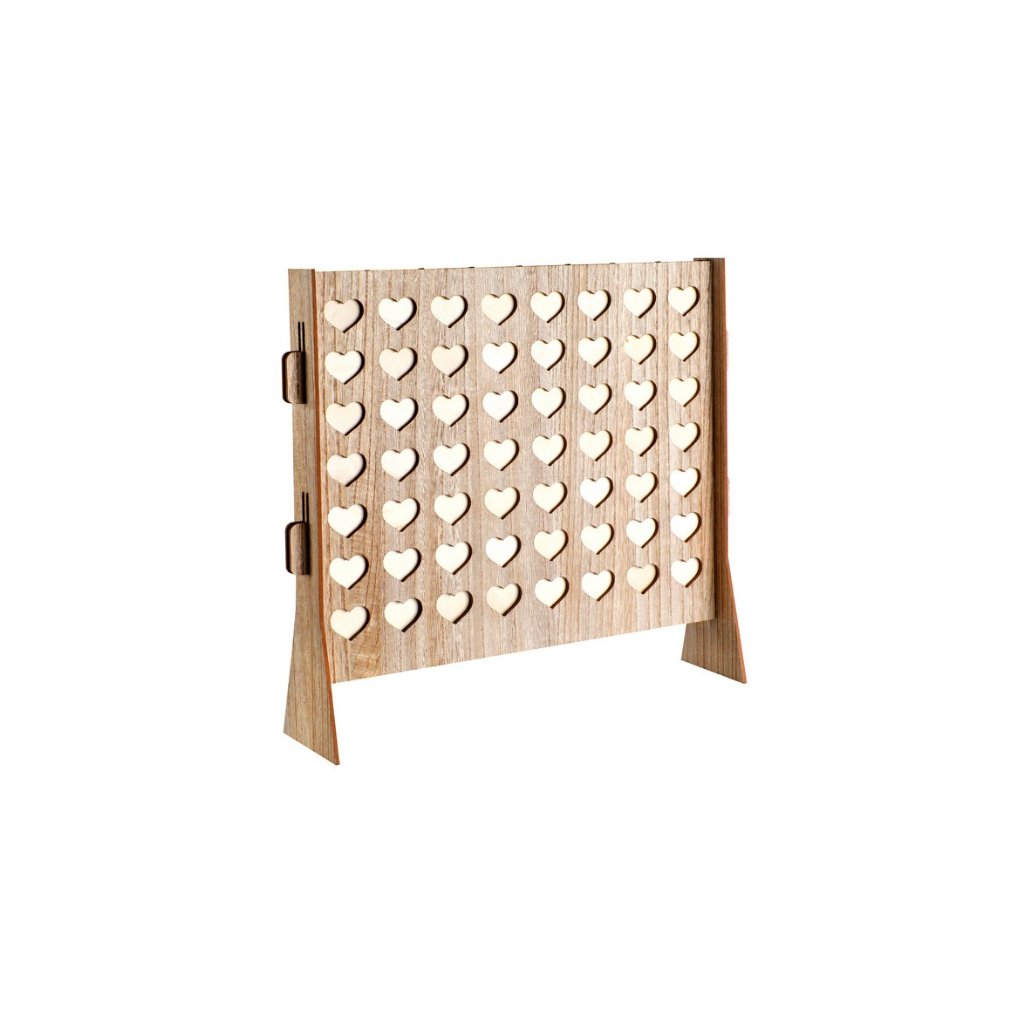 Svatební kniha hostů dřevěná ve tvaru rámečku s otvory na srdíčka, která bude na vaší svatbě středem pozornosti. Nechte si zapsat něco krásného na malé srdíčko od svých blízkých a hostů. Hodí se na jakoukoliv svatbu ale především, díky dřevěnému designu na nature svatby a svatby boho. Počet srdcí: 56 ks. Velikost: v 46,5 x h 11 x š 46,5 cm. Balení: 1 ks.Doplňkové parametry